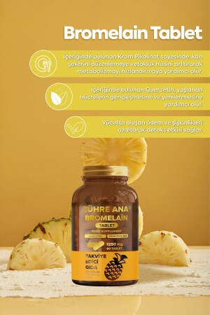MNZ- بروميلين 60 حبوب - بروميلين- كيرسيتين- بيكولينات الكروم و فيتامين سي 1250 مگ