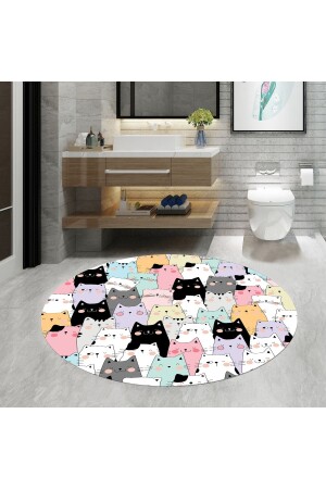 MNZ-, حمام حمام، نمط القط، 80cmx80cm، دائرة، غير زلق السجادة الأساسية multicat01