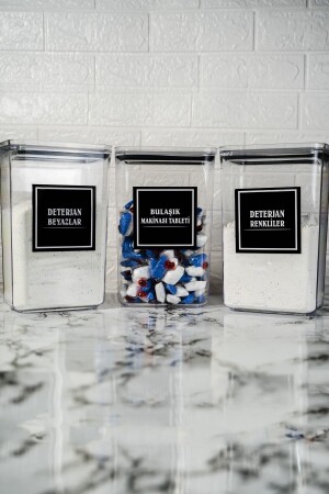Etiketli 2 Adet Toz Ve Tablet Deterjan Saklama Kutusu Deterjan Saklama Kabı - 2 Litre