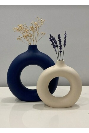 MNZ- ديكوراتيف السيراميك مات البحرية الأزرق - مات بيج حلقة وعاء بوهيم مجموعة من 2