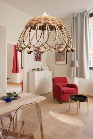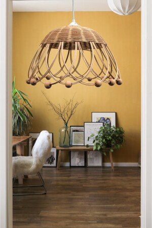 MNZ- رطنة، بامبو، مصباح معلق للكتلة قطر: 35 سم ارتفاع: 20 سم