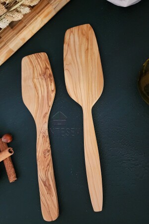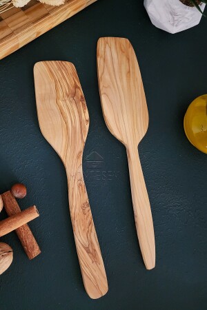 MNZ- زيتون الخشب الخشب القرصة الخشبية Spatula Set 2 Pieces (زيتون الخشب) القرصة الخشبية ZYT04