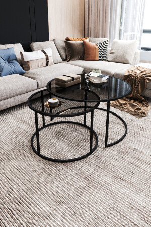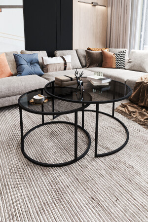 MNZ-Monza طاولة قهوة مزدوجة زجاج مدخن / MDF أسود 562021