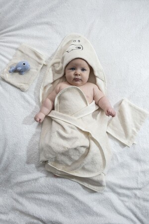 Cottonbox Baby Bornoz Seti Bornoz - Kundak - Önlük Zürafa Krem DGDK8740