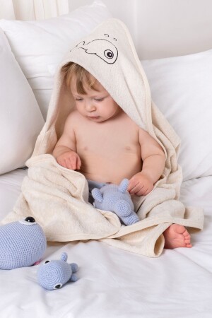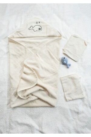 Bambu Balık Nakışlı Bebek Havlu Kundak Ve Kese Seti
