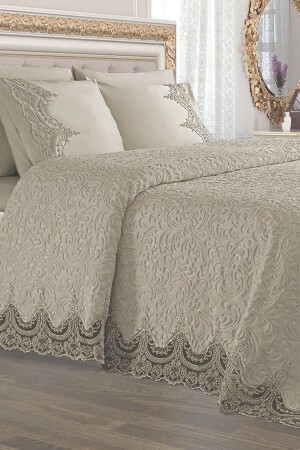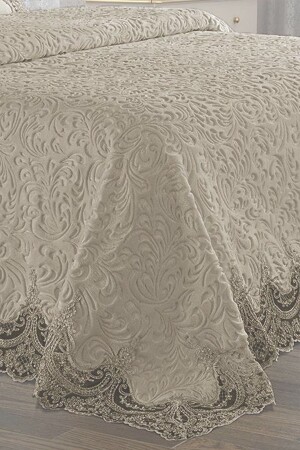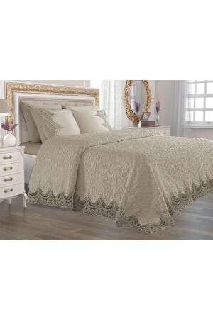 Krem Çift Kişilik Fransız Güpürlü Çeyizlik Battaniye Takımı