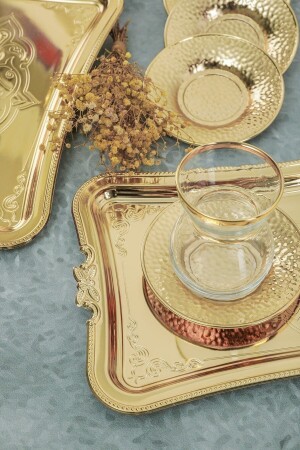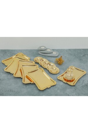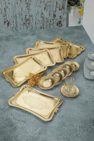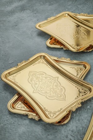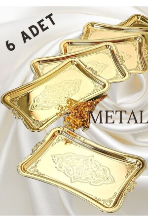 Paslanmaz Çelik Kare 6lı Aksesuarsız Çay Kahve Sunum Tepsisi