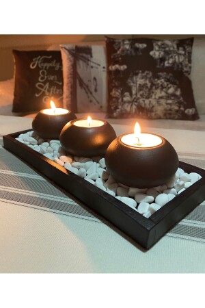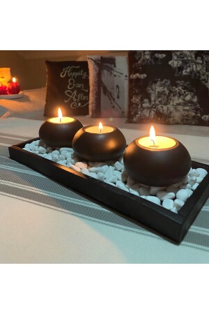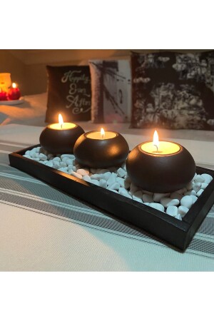 MNZ- مجموعة من 3 ألوحة خرسانية حاملات شمعة مزخرفة حاملة شمعة هدية عنصر المصابيح المضيئة