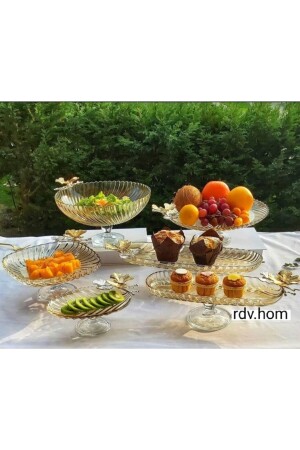 3'lü Modern Gold Salata Kayık Kase Seti