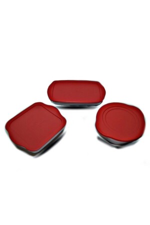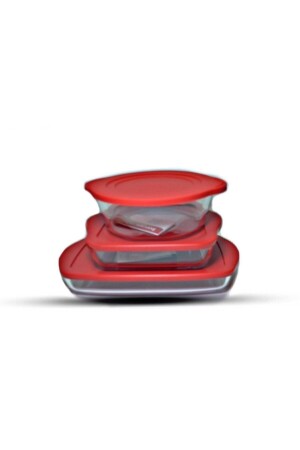 MNZ- مربع مستطيل مستطيل أحمر كأس بيركس مجموعة مع غطاء 3 قطع 59001 59034 59006