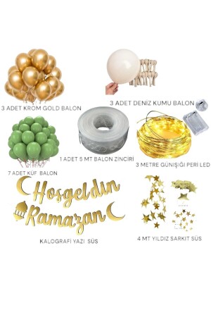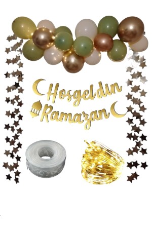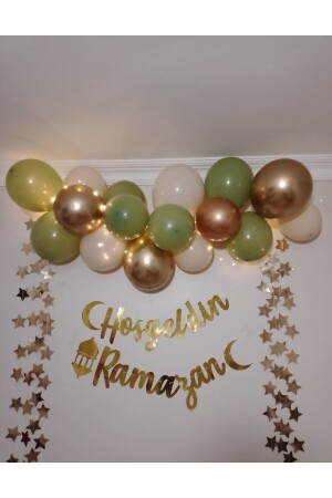 Hoşgeldin Ramazan Gold Yazı Ledli Zincir Balon Seti- Ramazan Ayı Süsleme Seti