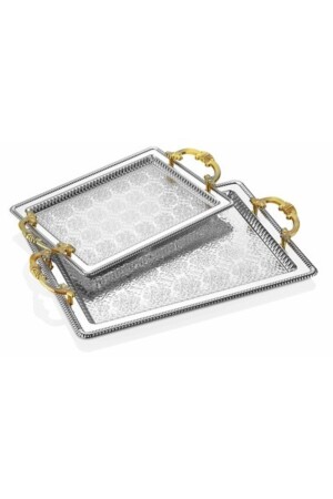 Lüx Kare Kelebek Aksesuarlı Paslanmaz Çelik 6’lı Gümüş Kahve, Çay, Dekoratif Sunum Servis Tepsisi MZKBK667