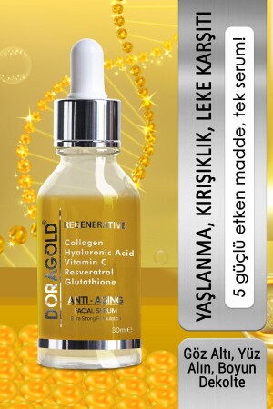 مادة دوراغولد المُجددة ضد الشيخوخة كولاجين سيروم 30 مل. يجمع سيروم دوراغولد الكولاجين 5 مكونات نشطة مثل حمض هيلورون