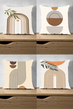 Bohem Flat Art Design Boho Style Kahverengi Krem Renklerde 4'lü Dijital Baskılı Kırlent Kılıfı