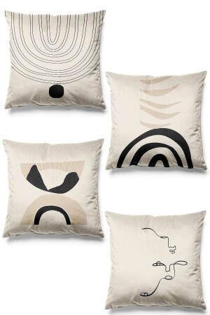 MNZ-Bohemian Design Flat Art Boho Style مجموعة من 4 أغطية مسادة من طراز الرموز الرقمية المطبوعة في ألوان البني والكريم