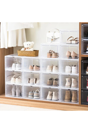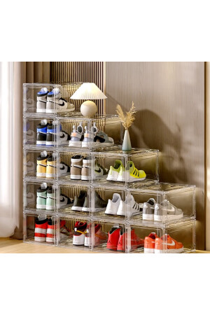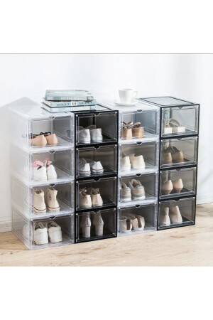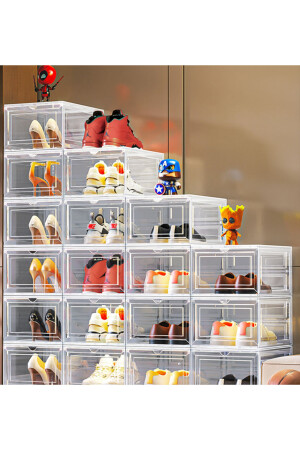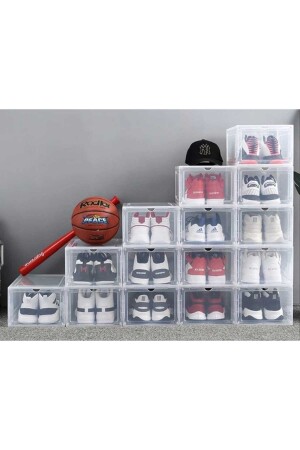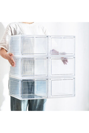 6 Adet Hava Alan Tasarım Kilitli Kapak Ayakkabı Saklama Kutusu