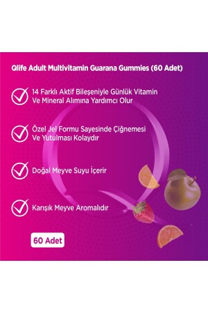 وصف المنتج: Qlife البالغين المليافيتامينات غوارانا غوميات 60 قرص مقوي