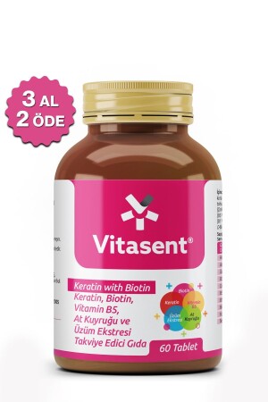MNZ- Keratin- Biotin- Vit B5- خياطة الخيل ومصدر العنب 60 حبوب (: 12. 2026)