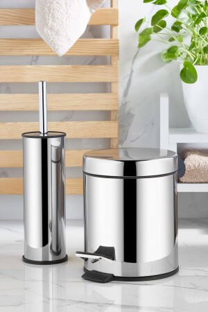 MNZ-ORSA HOME 3 LT. PEDAL STAINLESS CHROME TRASHBIN AND TOILET BRUSH SET. IT GIVES AN AESTETIC APPEarance