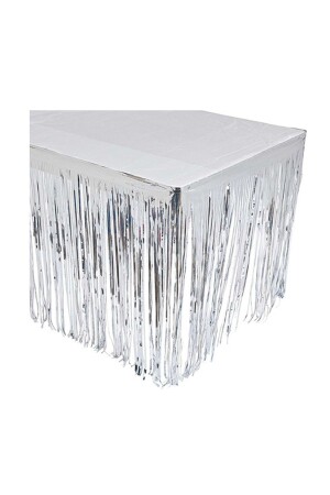 مقاس MNZ-360x75 سم - تنورة طاولة ملصقة مصنوعة من ورق رمادي فضي معدني لامع
