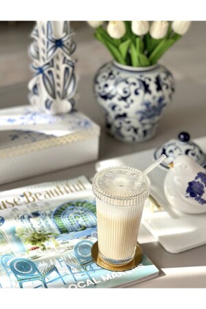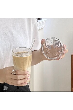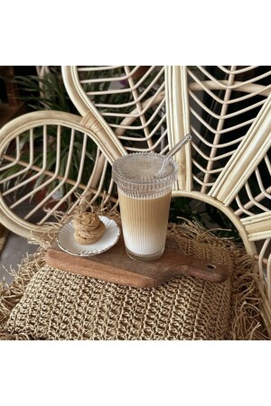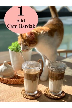 MNZ-1 كوب زجاج طويل المغطاة مع القش و القش. مصنوع من زجاج بوروسيليكات لا يستوعب أي رائحة أو مواد كيميائية أو بقايا. مناسبة للشراب