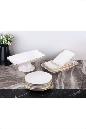 MNZ-10 قطعة كعكة ذهبية بيضاء خدمة تقديم الصحن مجموعة 10 قطع بيضاء