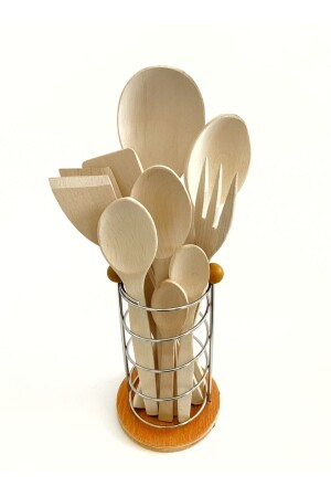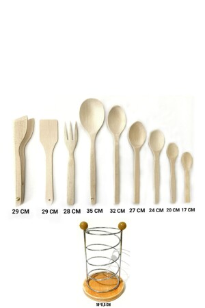 MNZ-10 Piece Wooden Spoon Wooden Spatula Serving Ladle Fork Tongs Set - with Metal Stand منتجاتنا مصنوعة من خشب البوك. لا تحتوي على مسحوق أو ملابس