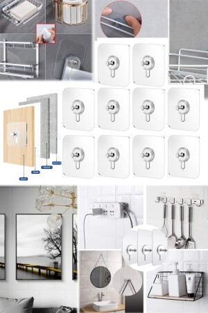 MNZ-10 Pcs ملصق المعلقة الأظافر الشفافة قوية دون تدمير الجدار دون حفرة ولا ترك أي آثار عالقة على الطاولة