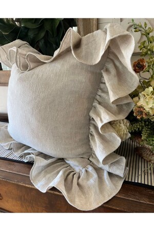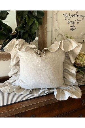 MNZ-Beige Country Frilly مستطيل رمي غطاء وسادة النسخة الناعمة العمر السكندنافي - بوهيمية - عيد الميلاد