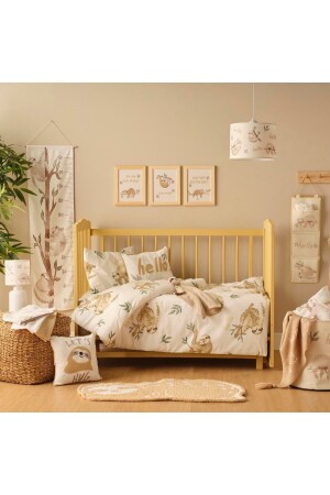 MNZ-100x150 سم حجم بطيء نمط بيج ملون 100% القطن 57 خيط Ranforce Sloth Baby Duvet Cover Set. لا يسبب التعرق بفضل خصائص امتصاص الرطوبة