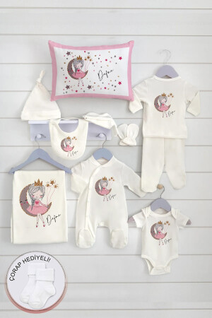 K69 Isme Özel Isimli Kız Bebek 10lu Beyaz Hastane Çıkışı %100 Pamuk