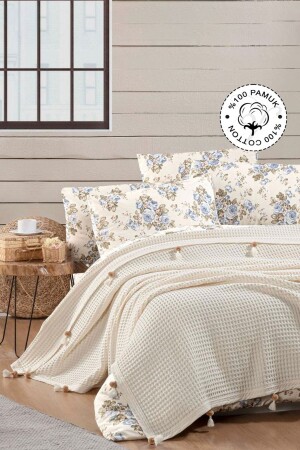 Saçaklı Pamuk Pike Çift Kişilik Loris Bej (200x230cm) 0903010124009