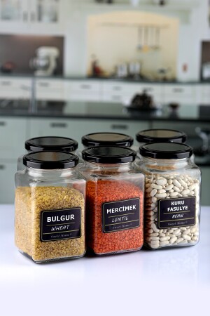 مكونات مجموعةنا من المواد 6 قطع من 1000 مل زجاجات الزجاج مربع الزاوية 6 غطاءات سوداء مزقرة 12 ملصقات مقاومة للمياه حجم الجرارات هو