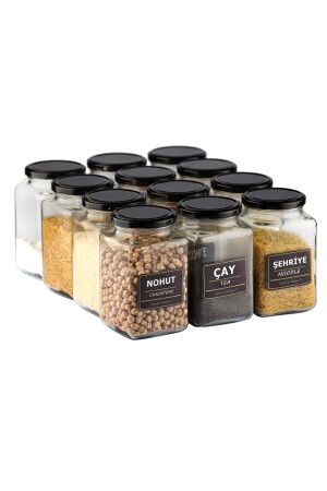 مكونات مجموعةنا من 12 1000 مل زجاجية زجاجية مربعة الزاوية 12 غطاء أسود مزقق 12 ملصقات مقاومة للمياه حجم الجرارات هو ما هو موضح