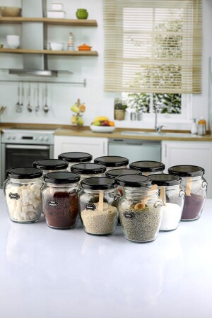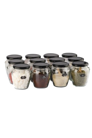 12'li Kapağı Kendinden Kaşıklı Ve Etiketli Baharatlık Seti 300 ml Gold Etiketli Cam Baharat Takımı