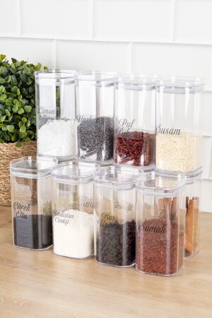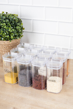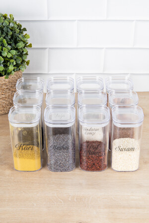 12'li Kapağı Kendinden Kaşıklı Ve Etiketli Baharatlık Seti 300 ml Gold Etiketli Cam Baharat Takımı