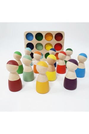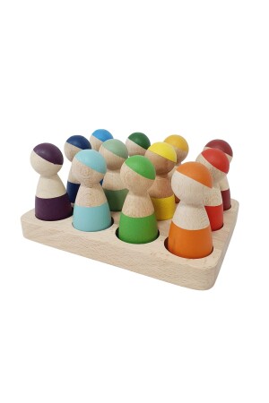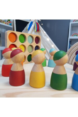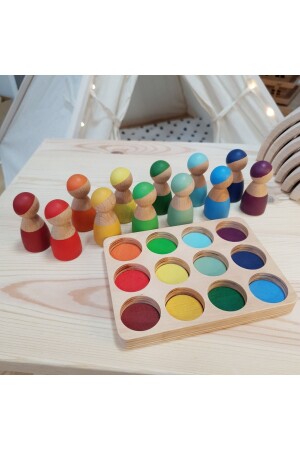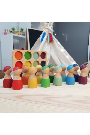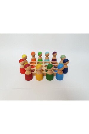 م.ن.ز-والدورف قوس قزح 12 قطعة شخصيات (دمى بيغ) و سلة - تحسن تصور الأطفال للألوان وتدعم المهارات الأساسية مثل التصني