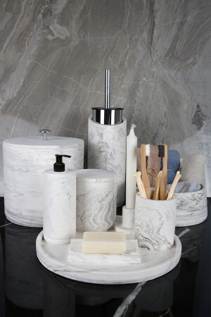MNZ-12 قطعة الرخام نمط المرحاض الخرسانية مجموعة صلبة مسيلة فرشاة الأسنان حامل الوقود حامل الغبار صندوقا شمعة