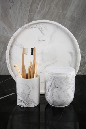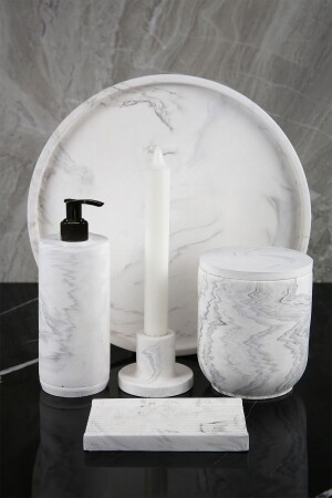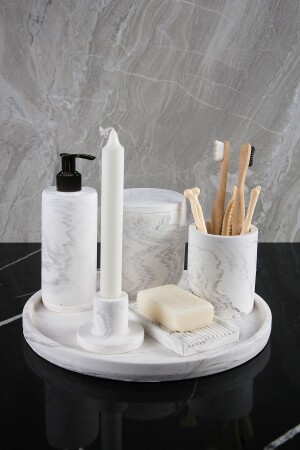 5 Parça Lucas Akrilik Bambu Banyo Seti Beyaz