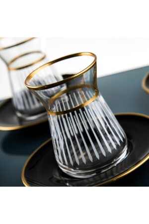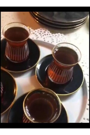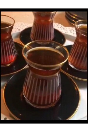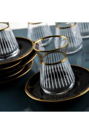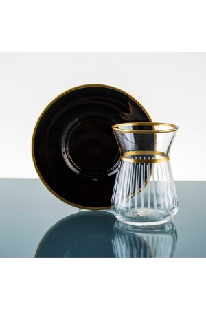 MNZ-الفخام المدخن اللون الأسود مجموعة الشاي - 12 قطعة كوب الشاي مجموعة fumeçaytakimi