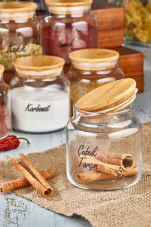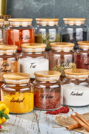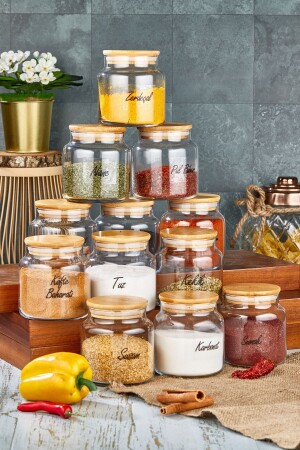 12'li Kapağı Kendinden Kaşıklı Ve Etiketli Baharatlık Seti 300 ml Gold Etiketli Cam Baharat Takımı