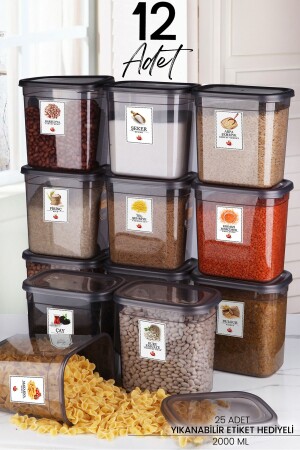 مُختططة المطبخ 12 قطعة حاوية تخزين الطعام مستطيلة مُعَلَّمَة بملل 2000 مل انتباه: سيتم إعطاء 1 مل