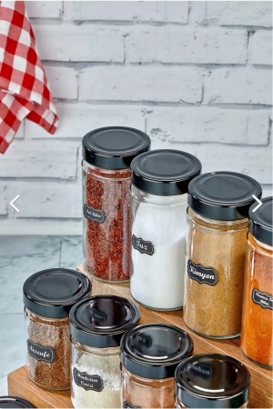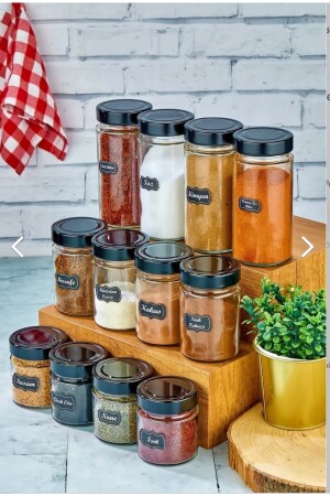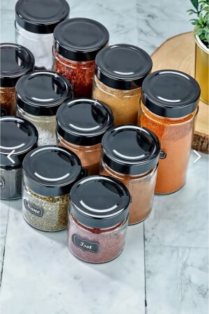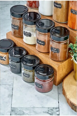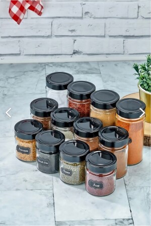 12'li Kapağı Kendinden Kaşıklı Ve Etiketli Baharatlık Seti 300 ml Gold Etiketli Cam Baharat Takımı
