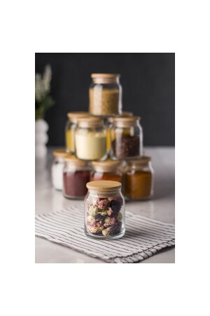 مجموعة من 12 وعاء زيوت زجاجي مغلق بالخلاء مع غطاءات البنبور والملعقة والعرض 9.5 سم عرض 6.5 سم محتوى مجموعة لدينا في المشاهد والمع