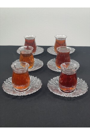 (منز) ، طلبك يتضمن 6 كوبات و 6 أطباق، الصحن و الزجاج زجاج، بحجم كوب الشاي