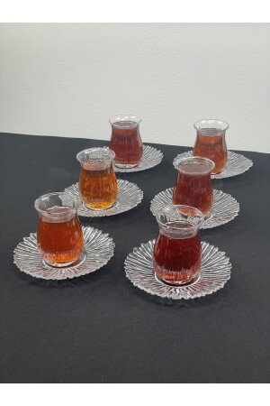 MNZ-12 قطعة من الزجاج مجموعة الشاي لـ 6 أشخاص، كوب الشاي والصوص