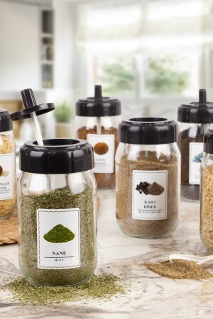 18'li Azure Etiketli Ve Kendinden Kaşıklı Baharatlık Seti 400 ml - Baharatlık Takımı MCH10510