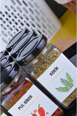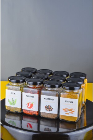 12'li Kapağı Kendinden Kaşıklı Ve Etiketli Baharatlık Seti 300 ml Gold Etiketli Cam Baharat Takımı