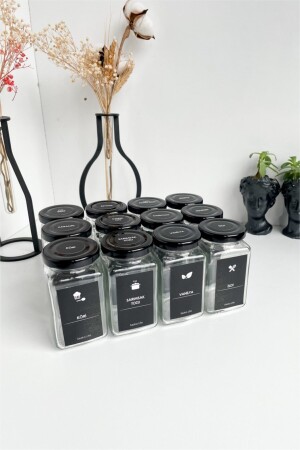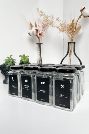 12'li Kapağı Kendinden Kaşıklı Ve Etiketli Baharatlık Seti 300 ml Gold Etiketli Cam Baharat Takımı