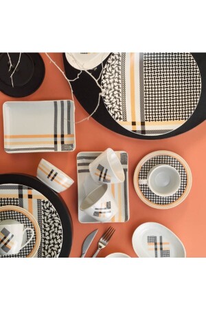 64 Parça 12 Kişilik Platin Modern Krem Kahvaltı Takımı